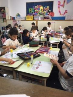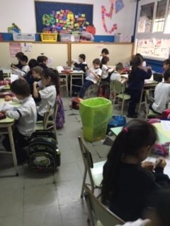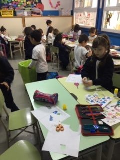 – Armado de capas de lluvia (sachets) junto a P.L. para alumnado de la escuela de Mendoza.